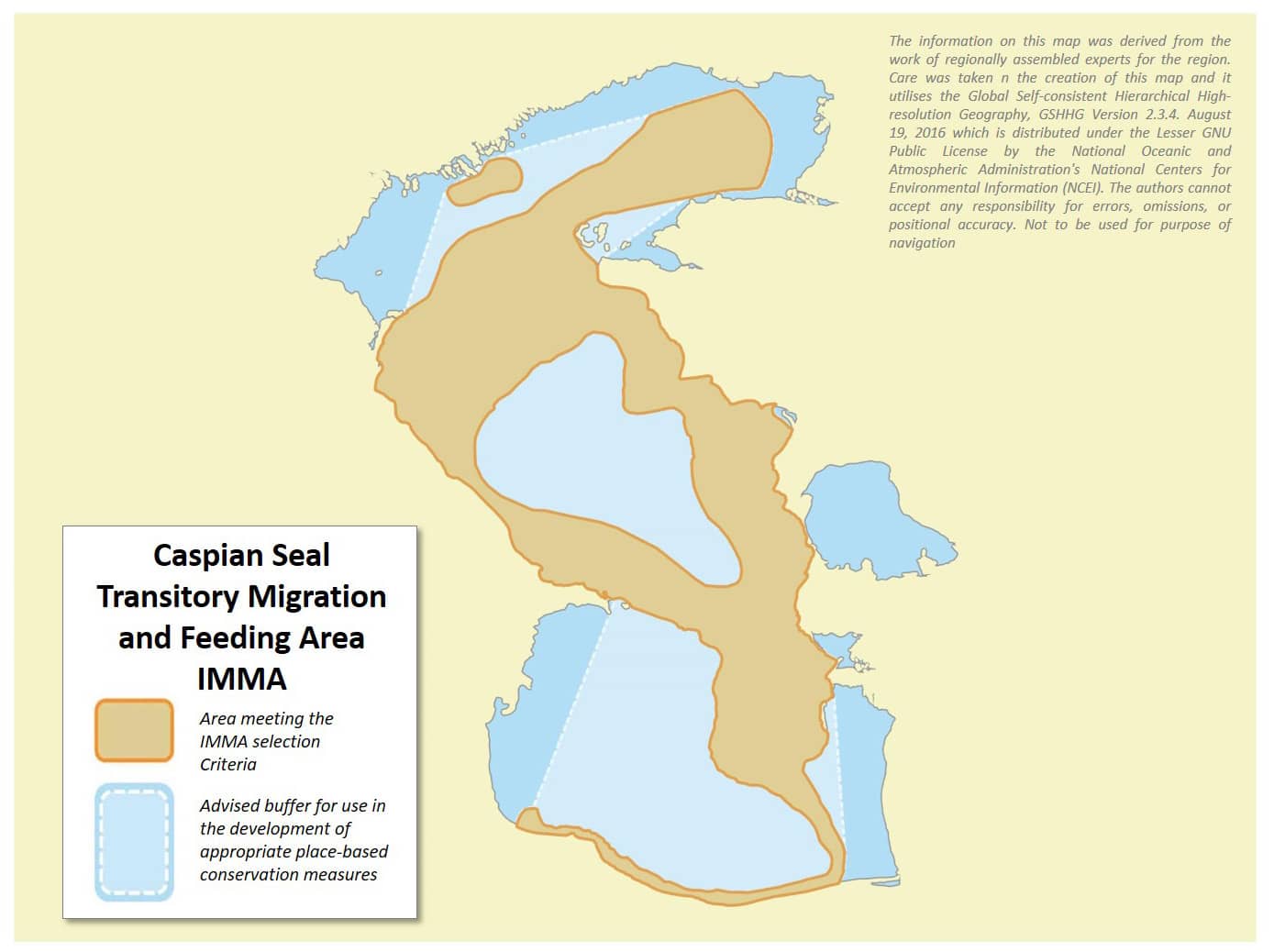 Идентификация районов Каспийского моря как ЗММА не подразумевает придания им охранного статуса, а лишь свидетельствует о том, что, по экспертной оценке, они являются ключевыми местами обитания для сохранения каспийского тюленя.